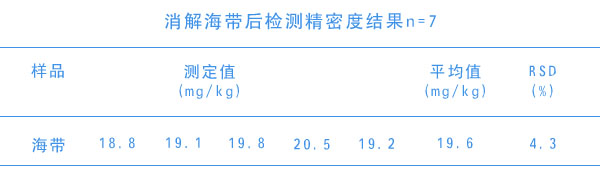 消解海帶后檢測精密度結果
