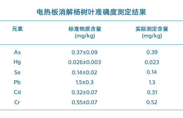 加熱板消解楊樹(shù)葉準(zhǔn)確性測(cè)定結(jié)果