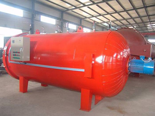 電加熱硫化罐通過活動接軌和接引小車將所需進行加工的產品裝入硫化小車通過軌道和接引小車進入硫化罐內,待其結束工作,再通過硫化小車把硫化產品運輸出來。